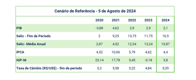 Na próxima tabela, confira nosso atual cenário de referência para 2024.