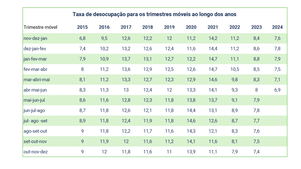 A taxa de desemprego de 6,9% para trimestres acabados em junho é a menor da série histórica. Temos dados bastante robustos de crescimento, acompanhados por baixo desemprego.